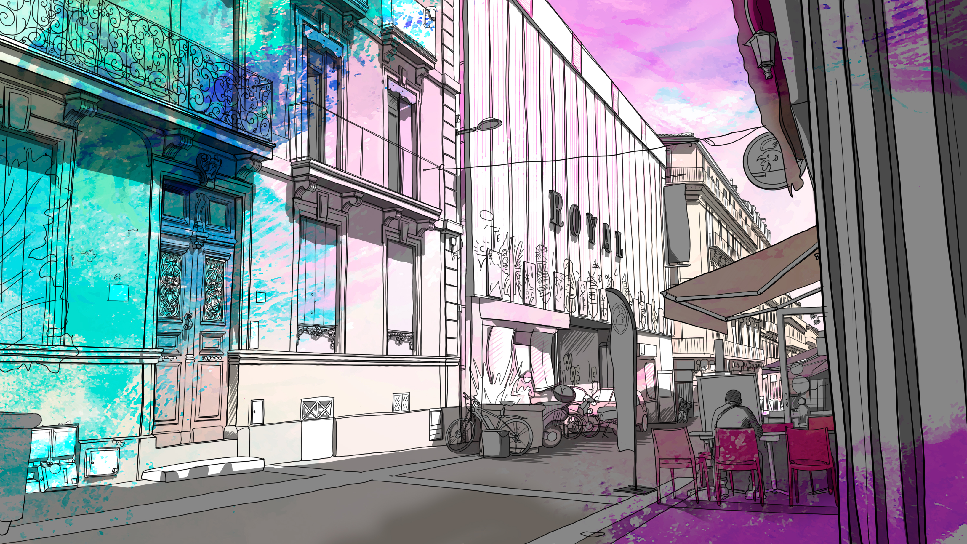 So whilst waiting for my washload to dry at the local cleaners, the opportunity to draw the now closed, Royal cinema was too jubilating to resist. Obviously there was quite a lot of work done when i got home but the fact is, you CAN sketch on a tablet on the move!