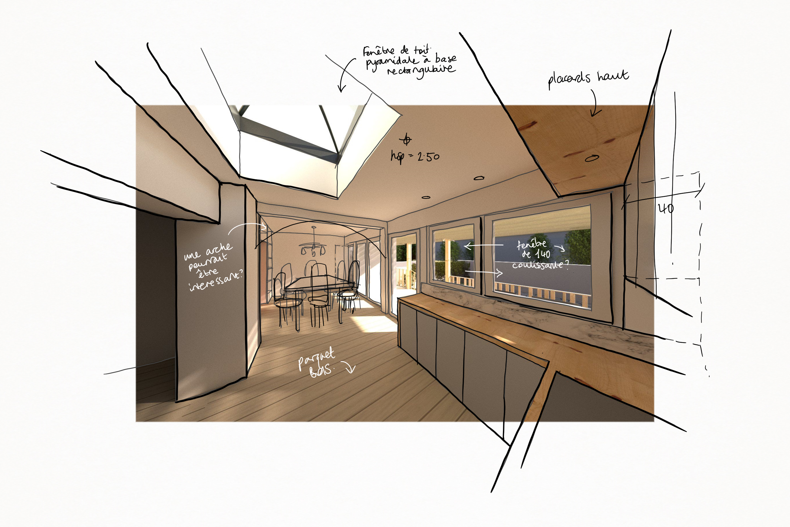 Encore un excellent exemple de conception vs. budget et réalité. Le résultat est fonctionnel et plaisant mais manque toutes les petites touches conceptuelles qui aurais pu en faire un projet architectural.