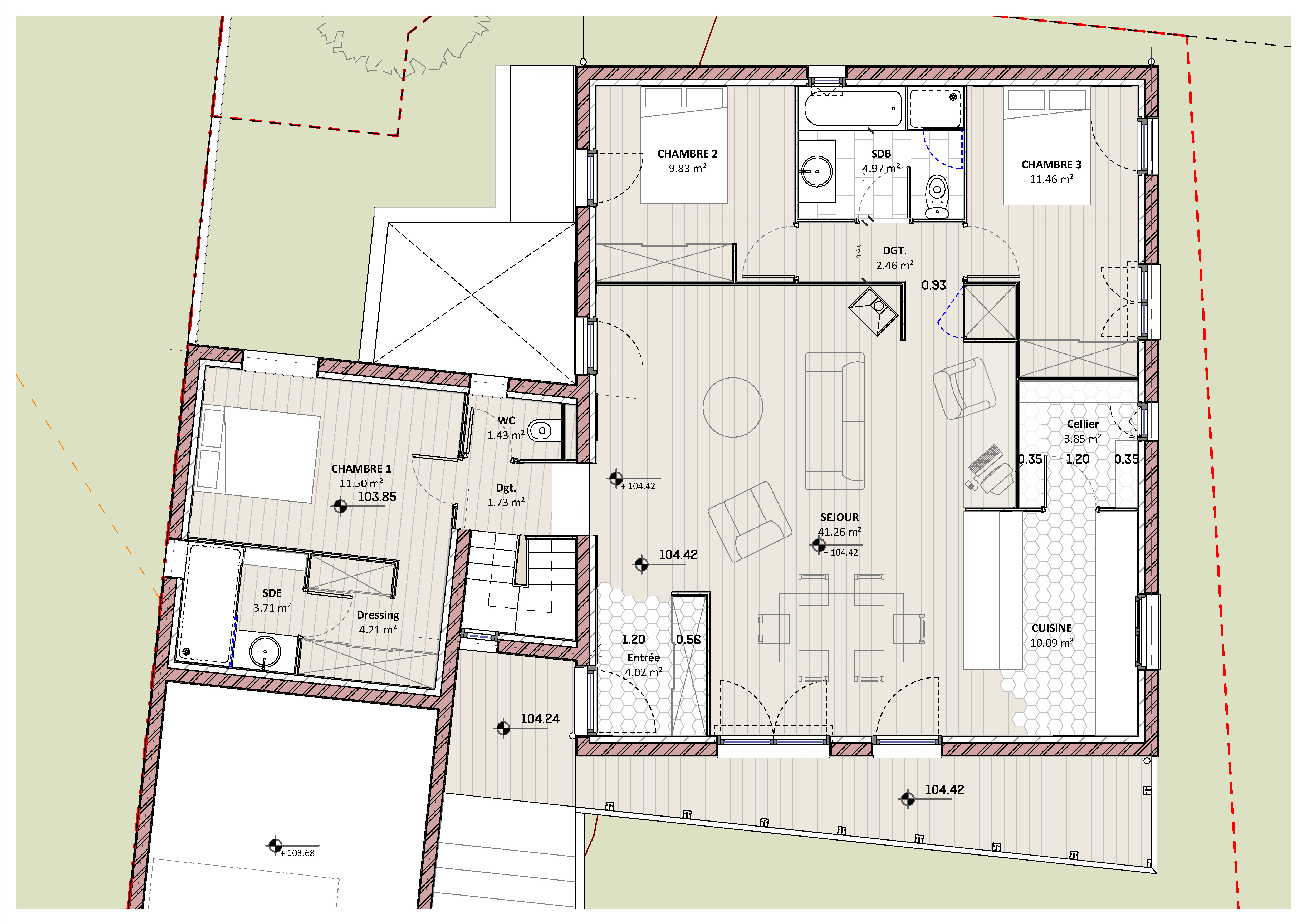 Projet d’une maison individuelle a Montauban. Maison de 190 m² avec dépendance en RDC Bas. La particularité de ce terrain étant la pente contraignante qui épouse cette parcelle situé dans les hauteurs de la ville.