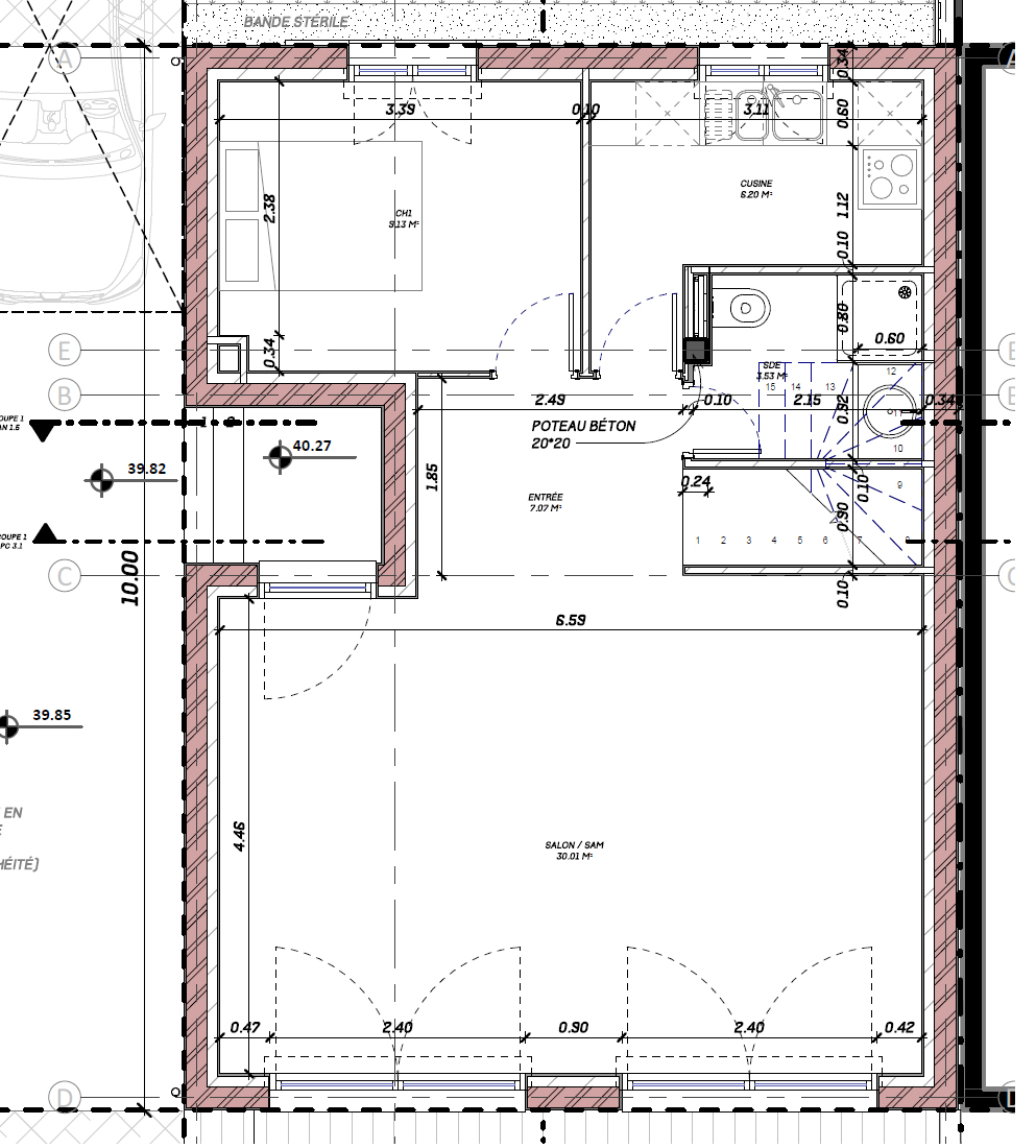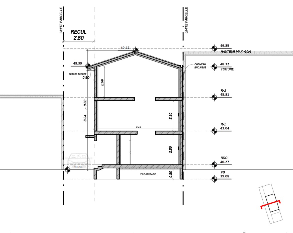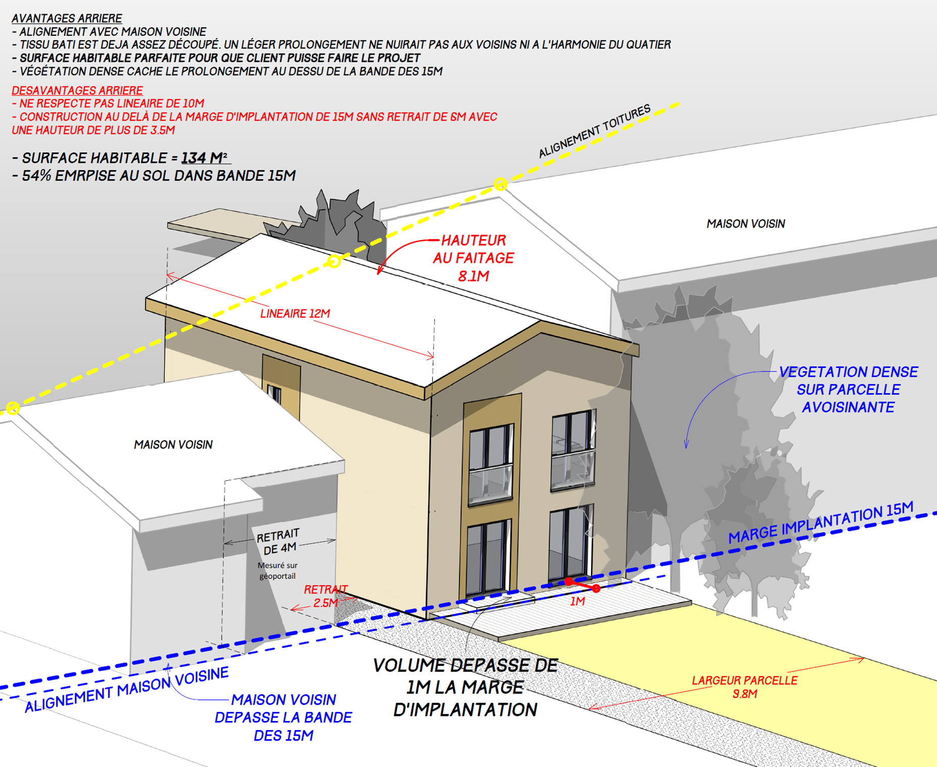 Projet de maison individuelle à RIS-ORANGIS. Etude moins que facile puisque une négociation qui remettait en question le PLU été demandé par le client. Le PC à été accordé mais un bras de fer avec la mairie s’est alors intégré au projet.