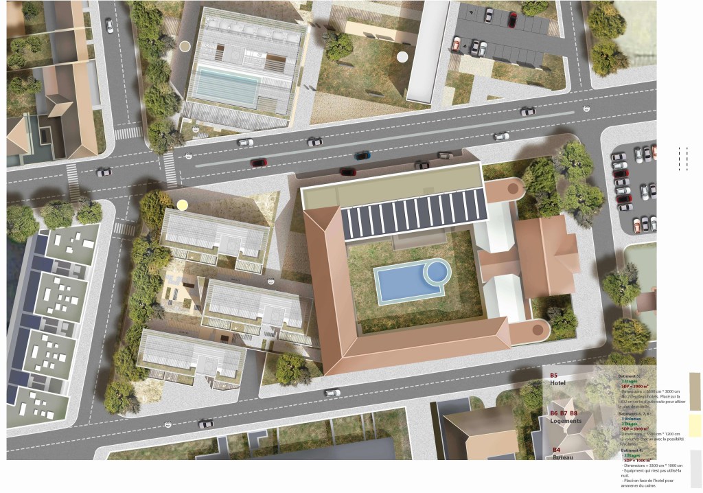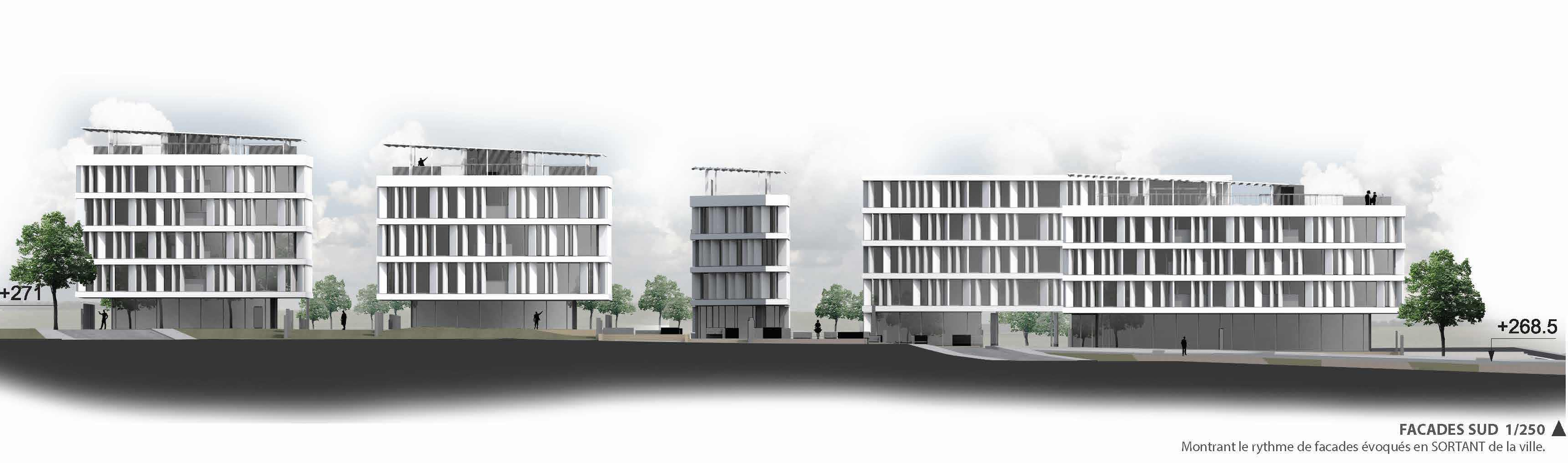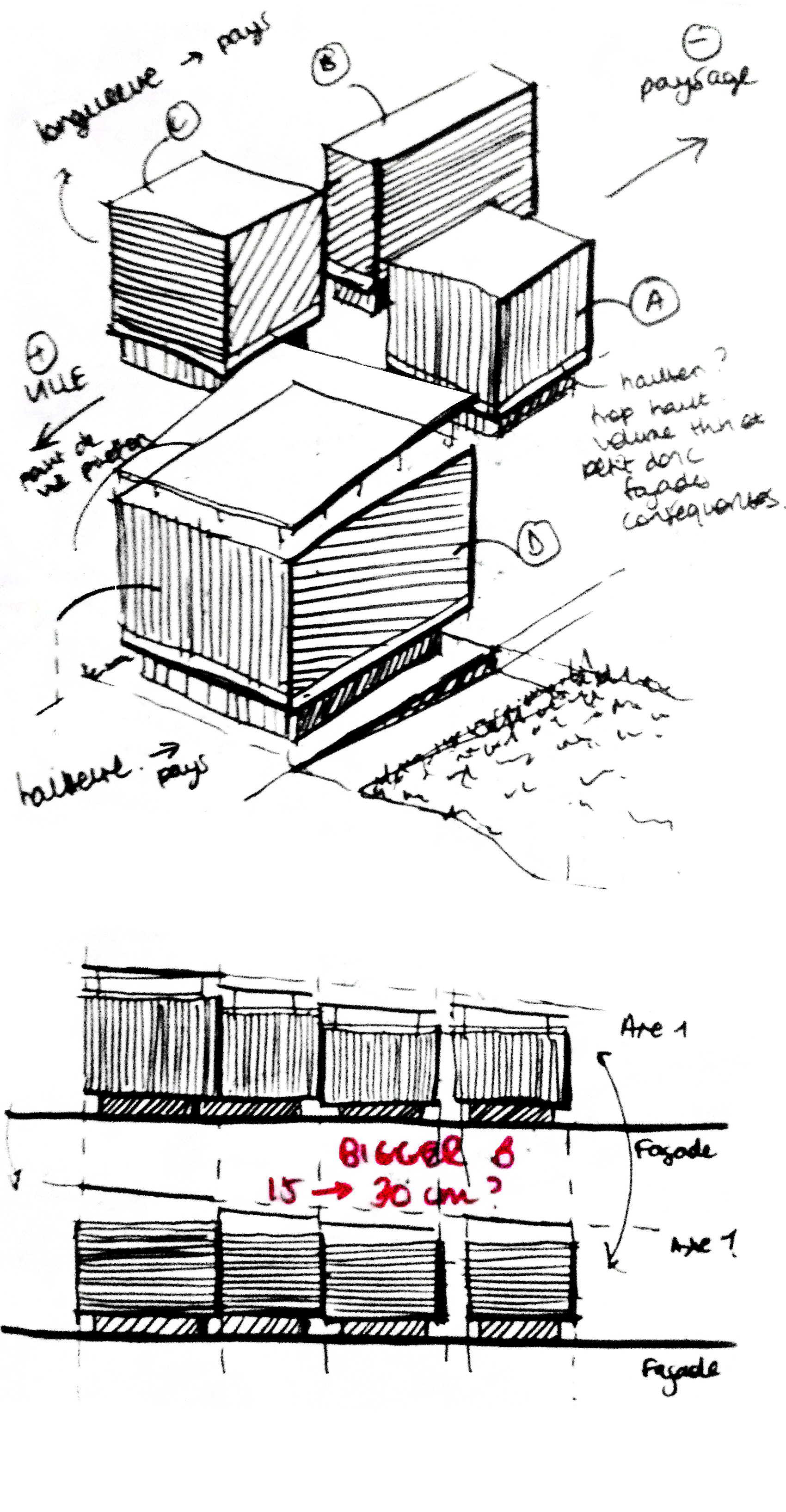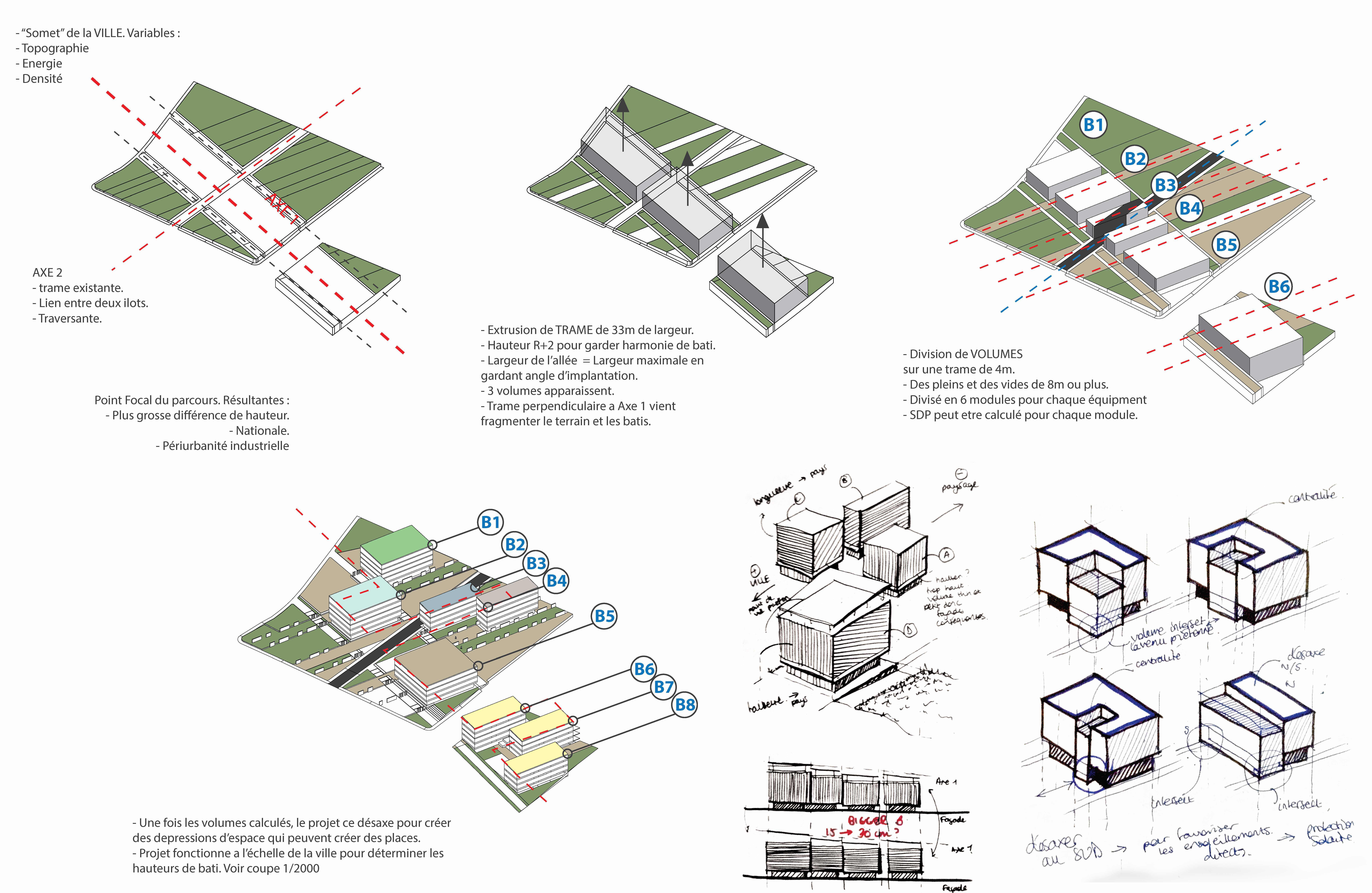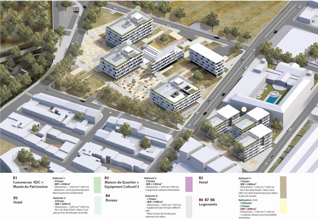 La ville étant construite sur une colline naturelle, la hauteur de chaque bâtiment a été déterminée en fonction de son altitude. En croisant les données topographiques et les gabarits bâtis, une ligne directrice de hauteur a été établie afin de préserver l’harmonie du paysage urbain et d’éviter toute rupture dans la silhouette de la ville.
