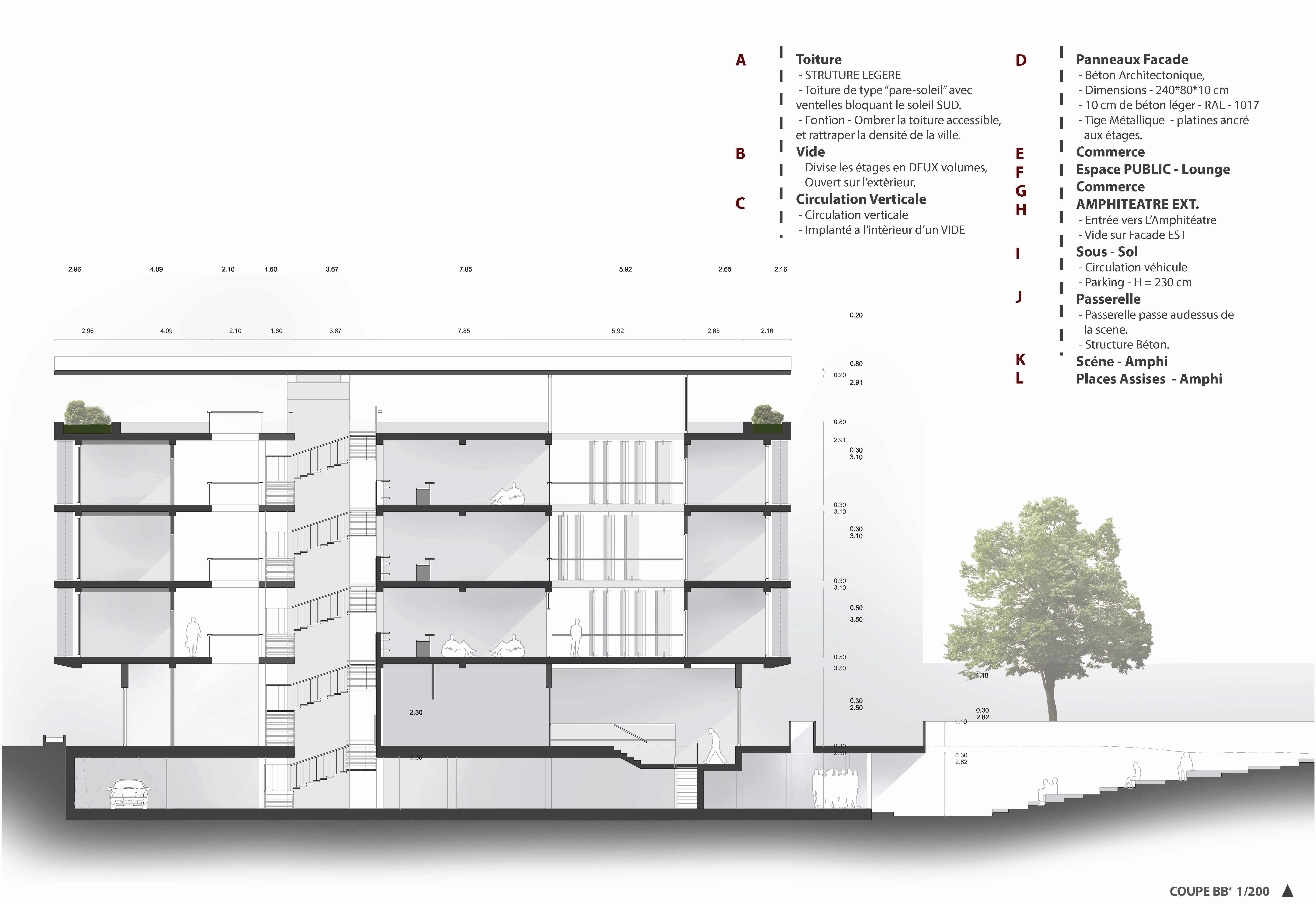 Le projet a été modélisé à l’aide des logiciels Rhino et Grasshopper. Le climat méditerranéen de cette région impose une attention particulière à la gestion solaire. L’architecture locale privilégie la verticalité, avec des ouvertures étroites mais hautes, afin de limiter les apports solaires directs, notamment en façade ouest.