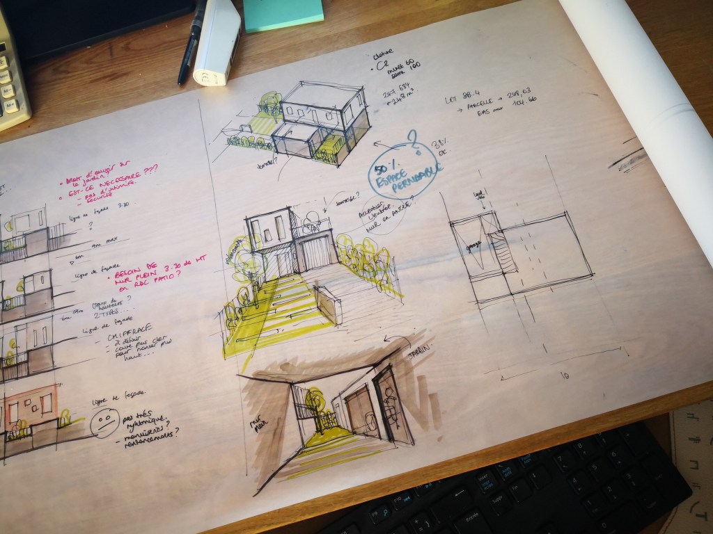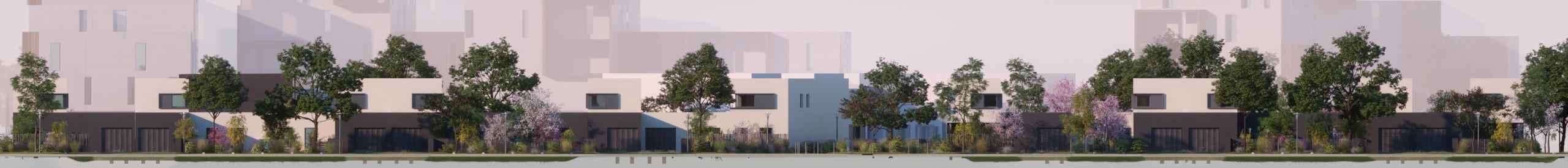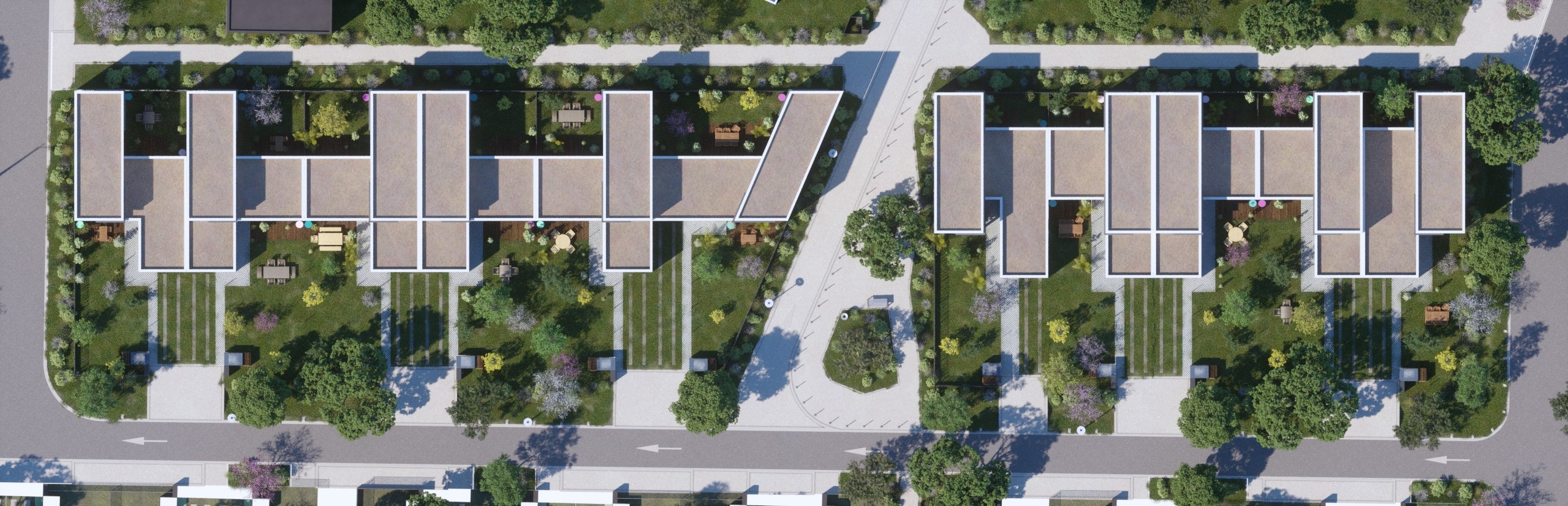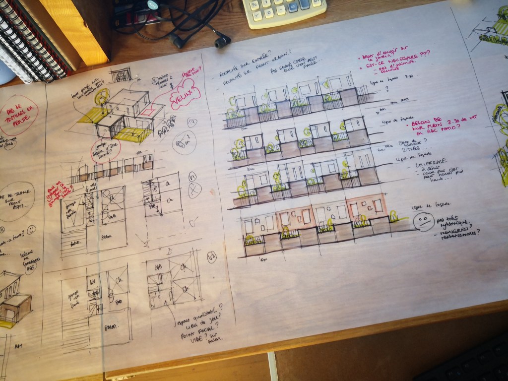 Un projet de 11 maisons individuelles en bande, réalisés sur base de concours. Une attention particulière aux exigences environnementales, qui débutait encore la scène de marché public français.